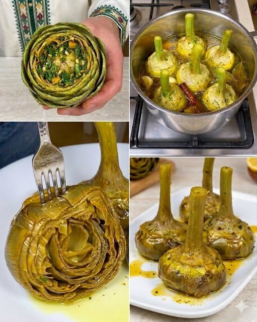 A differenza dei cugini “alla giudia”, che vengono fritti e risultano croccanti all’esterno, i carciofi alla romana si distinguono per la loro cottura in umido. Vengono lessati lentamente in un tegame con acqua, olio e un trito profumato di erbe, solitamente ripieni di aglio, prezzemolo e mentuccia romana (o menta). Il risultato è un carciofo tenero, saporito e avvolgente, che si sposa perfettamente con secondi piatti a base di carne o come piatto unico vegetariano.