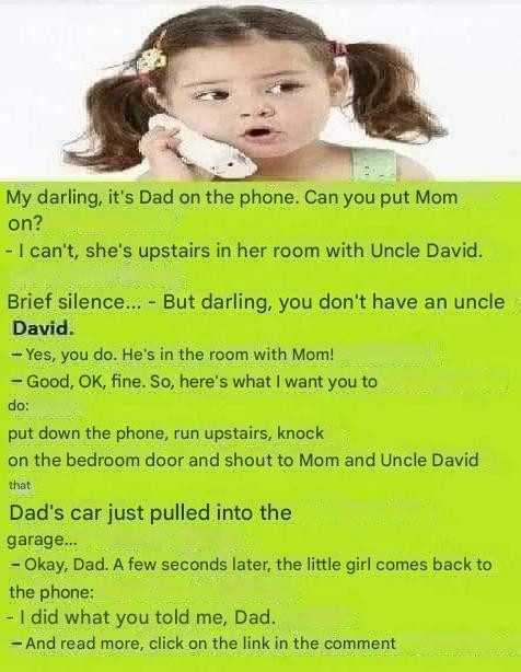After a few seconds, someone answered. It was a little girl. The father then asked her: “Hello sweetheart, it’s Dad on the phone… Can you put Mom on?”
