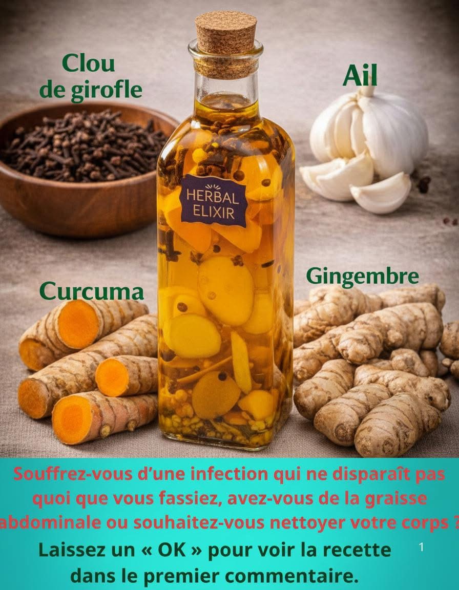 Aujourd’hui, je vous partage une préparation naturelle simple à base de quatre ingrédients puissants : clou de girofle, ail, curcuma et gingembre. Ce mélange traditionnel est utilisé depuis des siècles pour soutenir le système immunitaire, favoriser la digestion et contribuer à réduire l’inflammation.
