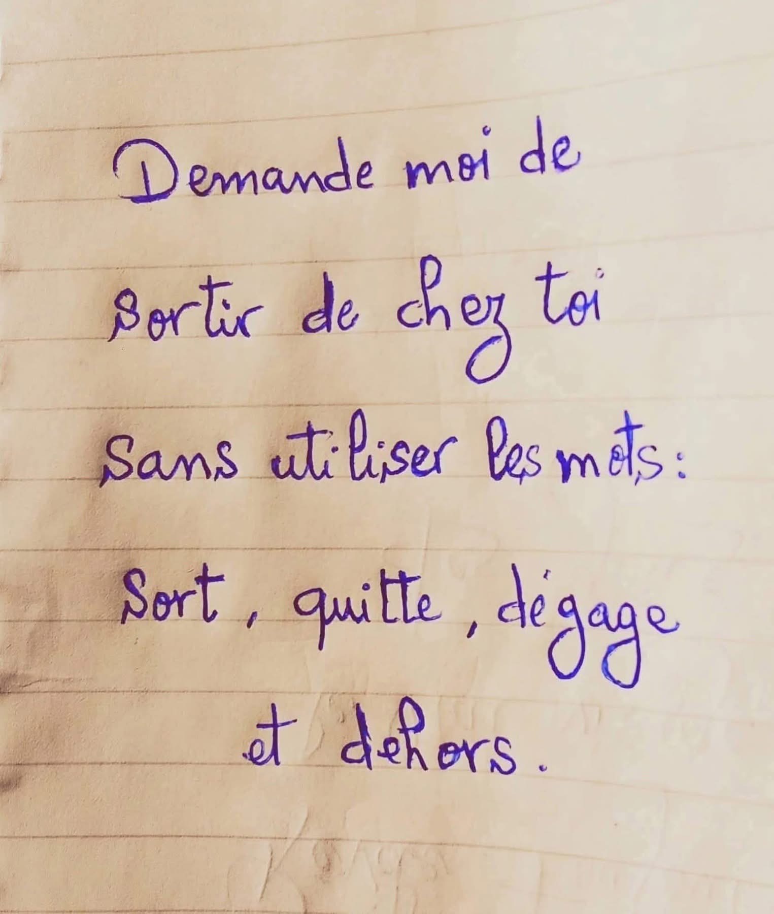 Demander à quelqu’un de sortir de chez toi sans utiliser les mots :